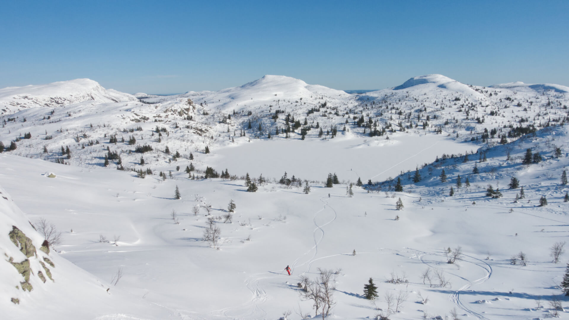 Helt otroligt att jag avslutar den 6’e säsongen i Almdalen i år – tiden går onekligen fort när man har kul, och det är det ofta här ute. Faktum är att skulle jag bli insnöad på ett ställe över en vinter så skulle Almdalens topptursparadis ligga högt på listan. Både av ren vilja, men även på grund av snömängderna. När det på många andra håll har rådit snöbrist så har det nästan inte märkts här.
